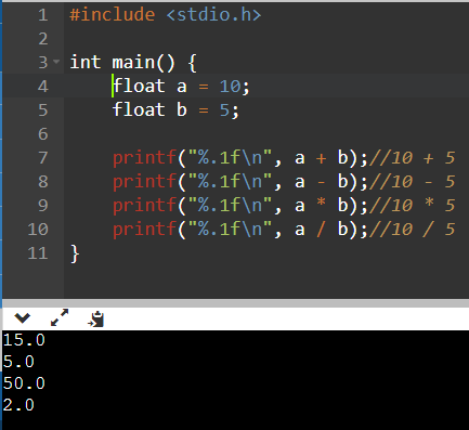 printf("%.1f\n", a + b);//10 + 5