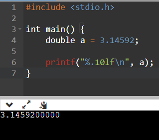 %와 lf 사이에 .(소수점자릿수) 를 적으면 해당 자릿수까지만 반올림되어 출력된다.(float을 출력할 땐 f...)