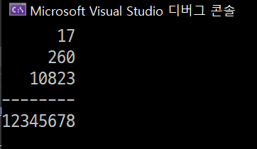 17은 6칸, 260은 5칸, 10823은 3칸이 밀려난 상태로 출력이 된 걸 볼 수 있다.