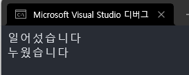 따라서 두 번째 코드도 똑같이 "일어섰습니다" 라고 나온다.