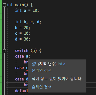 (4) case에 들어가는 값은 상수여야 한다
