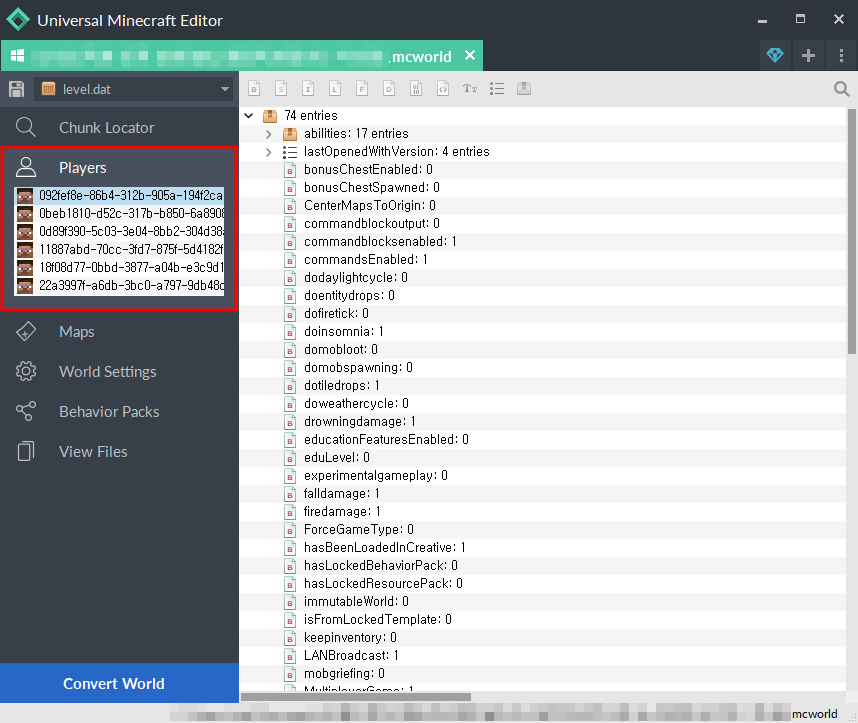 월드는 그대로 보존한 채 플레이어 데이터만 지우고 싶은 경우가 있다