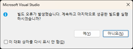 1) 대화창 없이 기존 코드 빌드본 실행하기