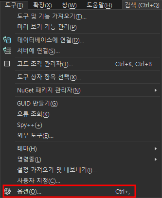 도구 메뉴에서 옵션을 클릭한다