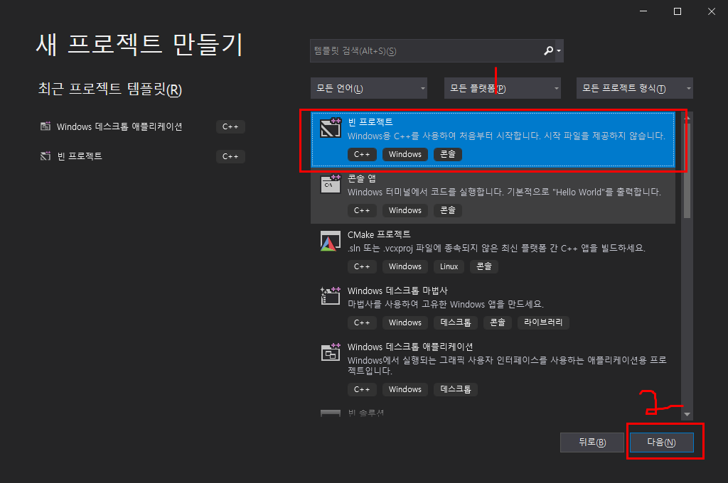 처음 만드는 것이니 새 프로젝트 만들기 클릭