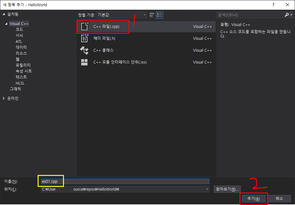 (확장자를 .c가 아닌 .cpp로 하는 이유는 지난 0강에서 설명한 바와 같다)